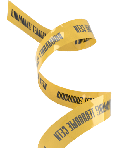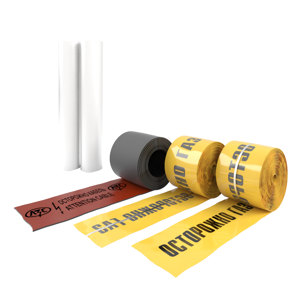 Ленты сигнальные «Осторожно Газ», «Осторожно кабель», «Внимание! Тепловые сети», «Не копать! Ниже оптический кабель». Оградительная красно-белая лента.